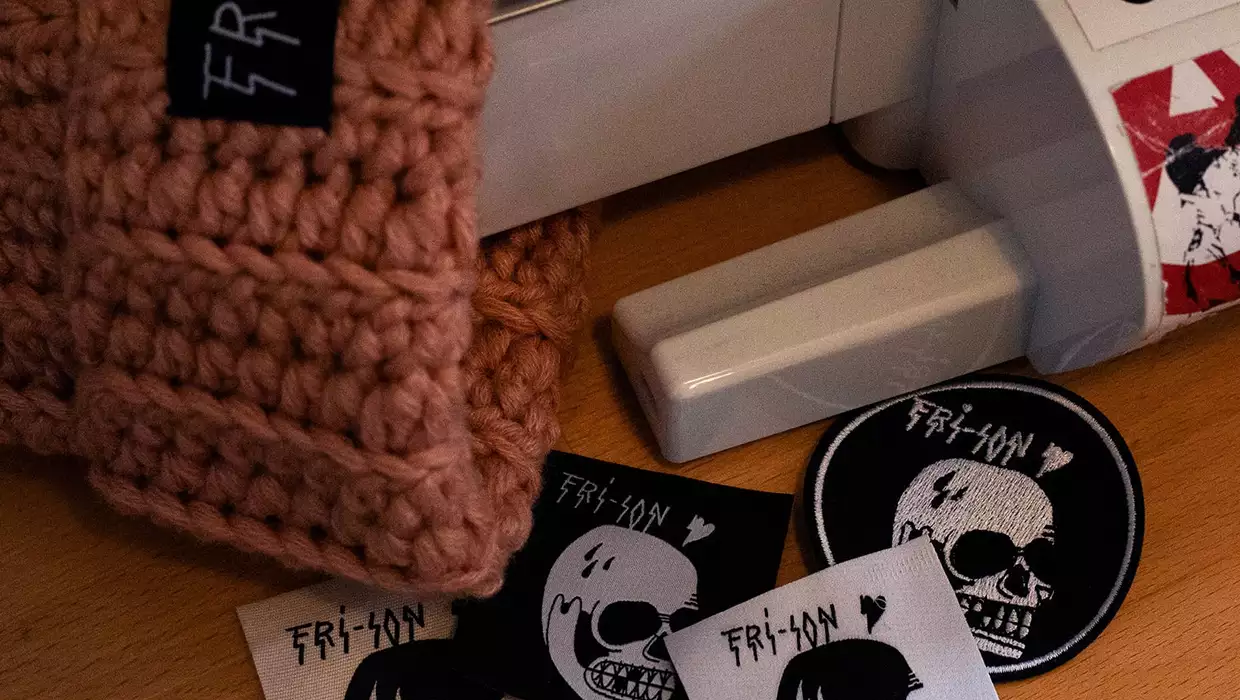 Caps, Socken, T-Shirts, Schürzen, Notizbücher, Fri-Son-Buch, Buttons sowie Etiketten und Patches zum Aufnähen auf deine Kleider....